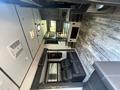 The living area features theater reclining seating with a sofa that converts into a bed – storage around the entertainment center with a fireplace below. The center bath area includes a corner stand-up shower, storage under the vanity, and a linen closet.