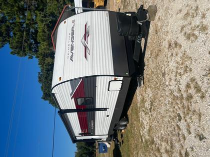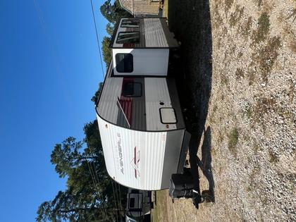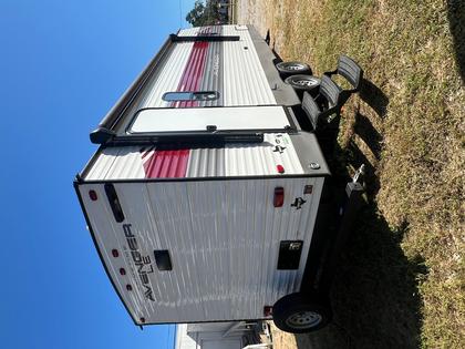 - Features: Aluminum build/siding, one entry door, AC, two axles, awning, sleeps 3, super slide, rear kitchen with 3-burner stove/oven, microwave, mid-size fridge, large sink, coffee bar, ample storage, booth table converts to bed, center bath with shower, queen bed up front with storage, outside pass-through storage