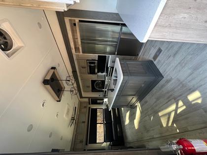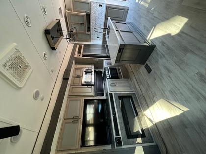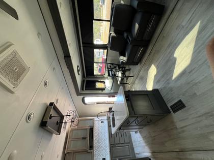 Features include an on-demand tankless water heater, aluminum frame with aluminum siding, single entry door, dual A/C units, dual axles, two awnings, sleeping space for four, center kitchen with three-burner stove/oven, microwave, full-size residential refrigerator, free-standing table, large bathroom with a spacious shower, his & hers sinks, king bed in the front bedroom, mirrored closet, washer/dryer prep, beautiful floors, ample space, and exterior storage.
